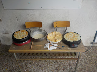 Ce matin, nous avons fait la pâte à crêpes, à partir d'une poésie que nous avons inventée, tous ensemble, en travaillant sur les rimes...